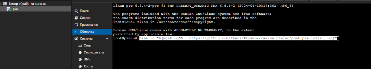 bash -c "$(wget -qLO - https://github.com/tteck/Proxmox/raw/main/misc/post-pve-inst...)"
